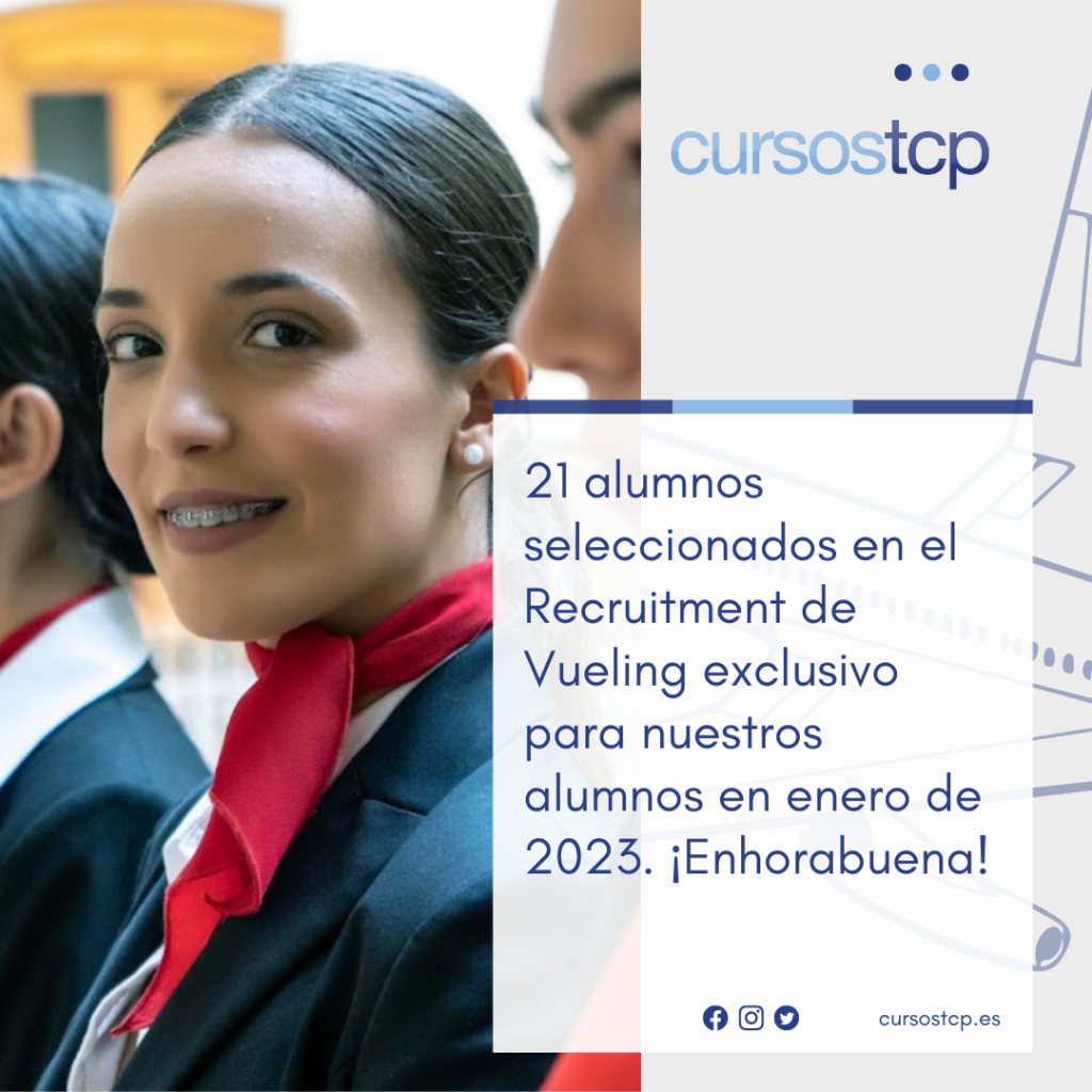 Buenas noticias para nuestros alumnos: La compañía aérea Vueling realizó un Recruitment en exclusiva para nuestros alumnos el pasado mes de enero de 2023 en nuestro centro de Madrid. Hace unos días Vueling […]