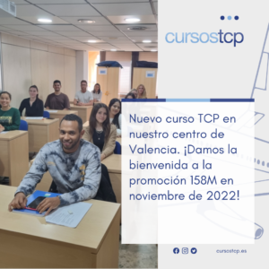 5 diciembre, 2022Nuevo curso TCP en nuestro centro de Valencia. ¡Damos la bienvenida a la promoción 158M en noviembre de 2022!